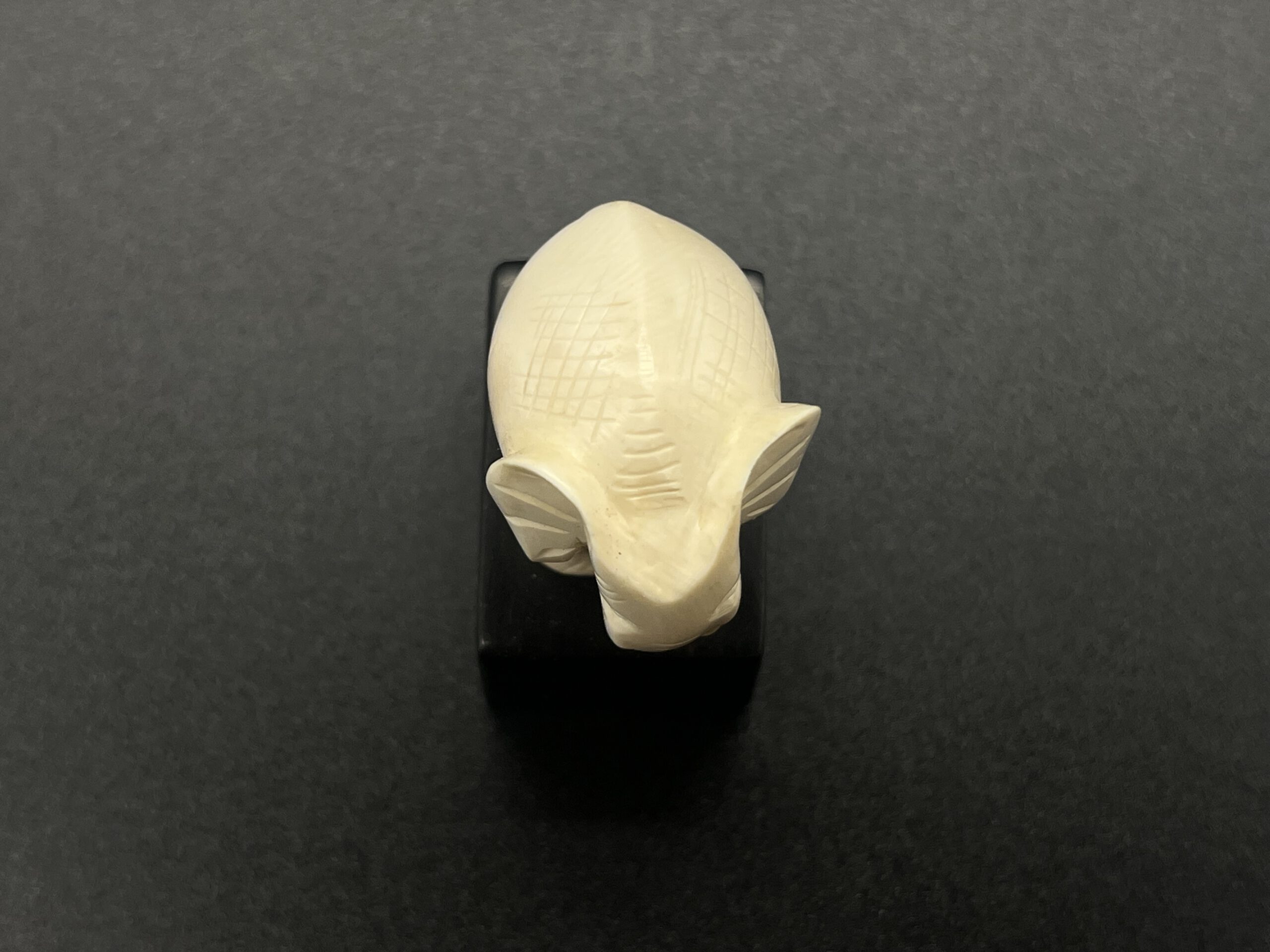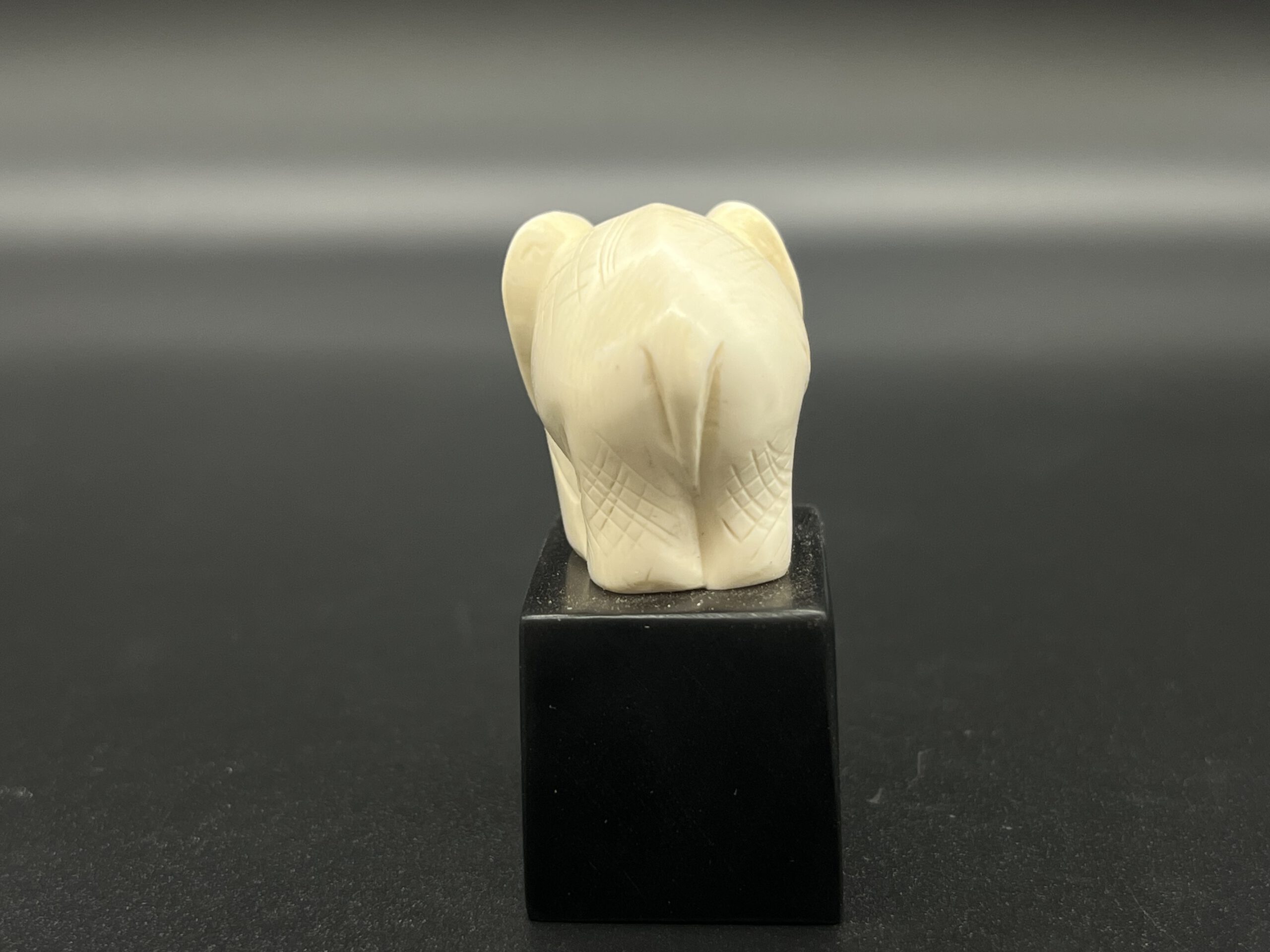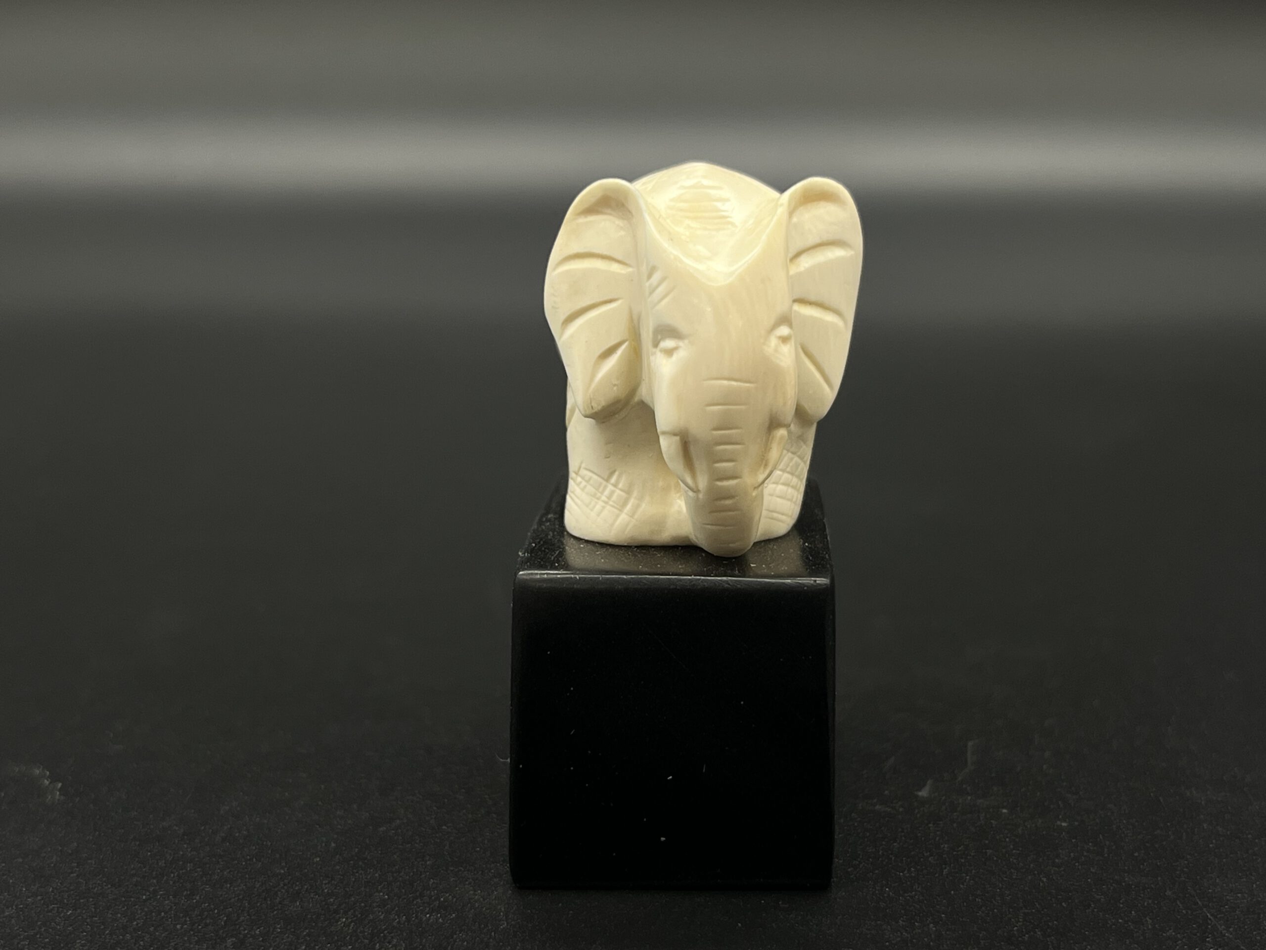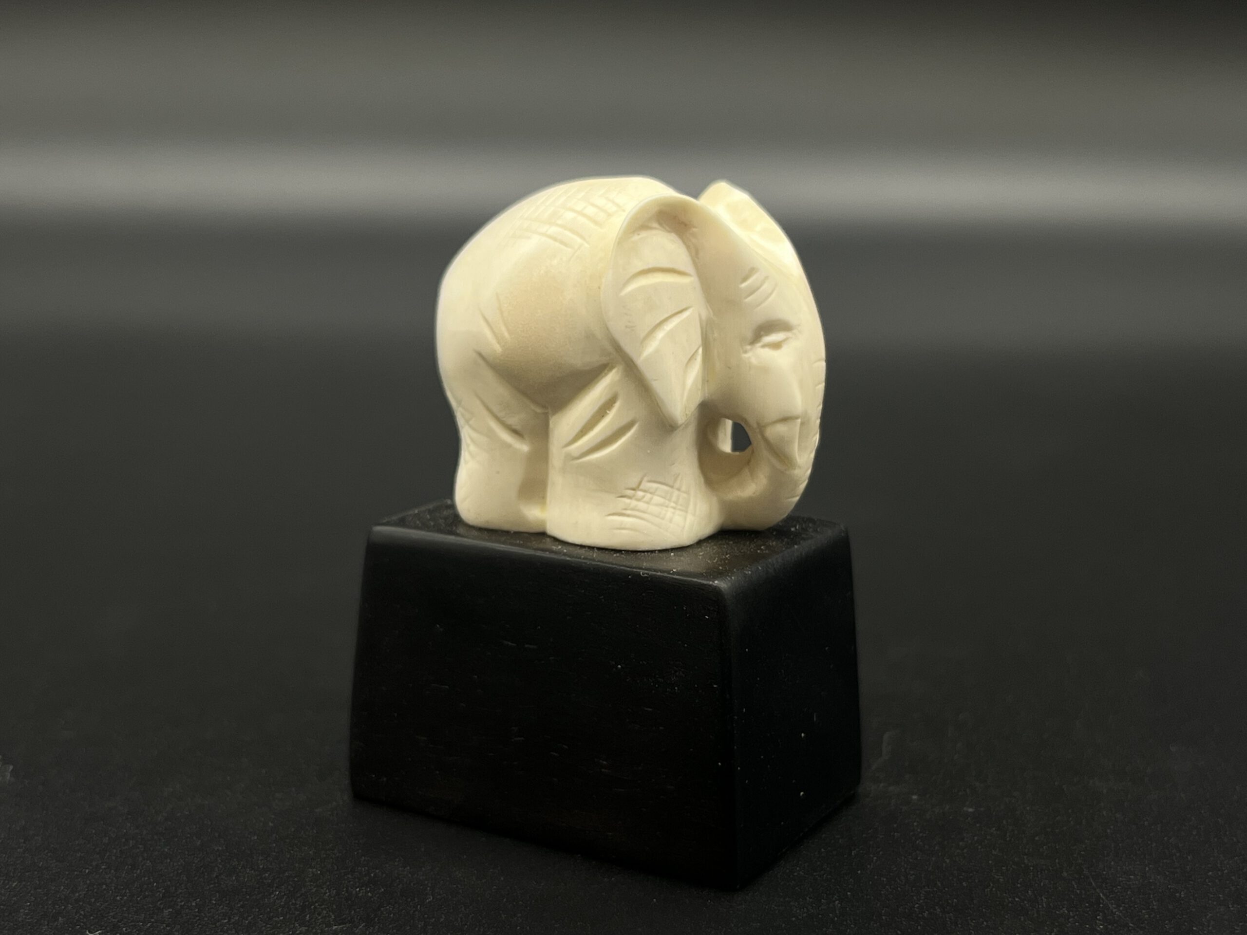 Kugelelefant aus Mammutelfenbein auf Holzsockel.