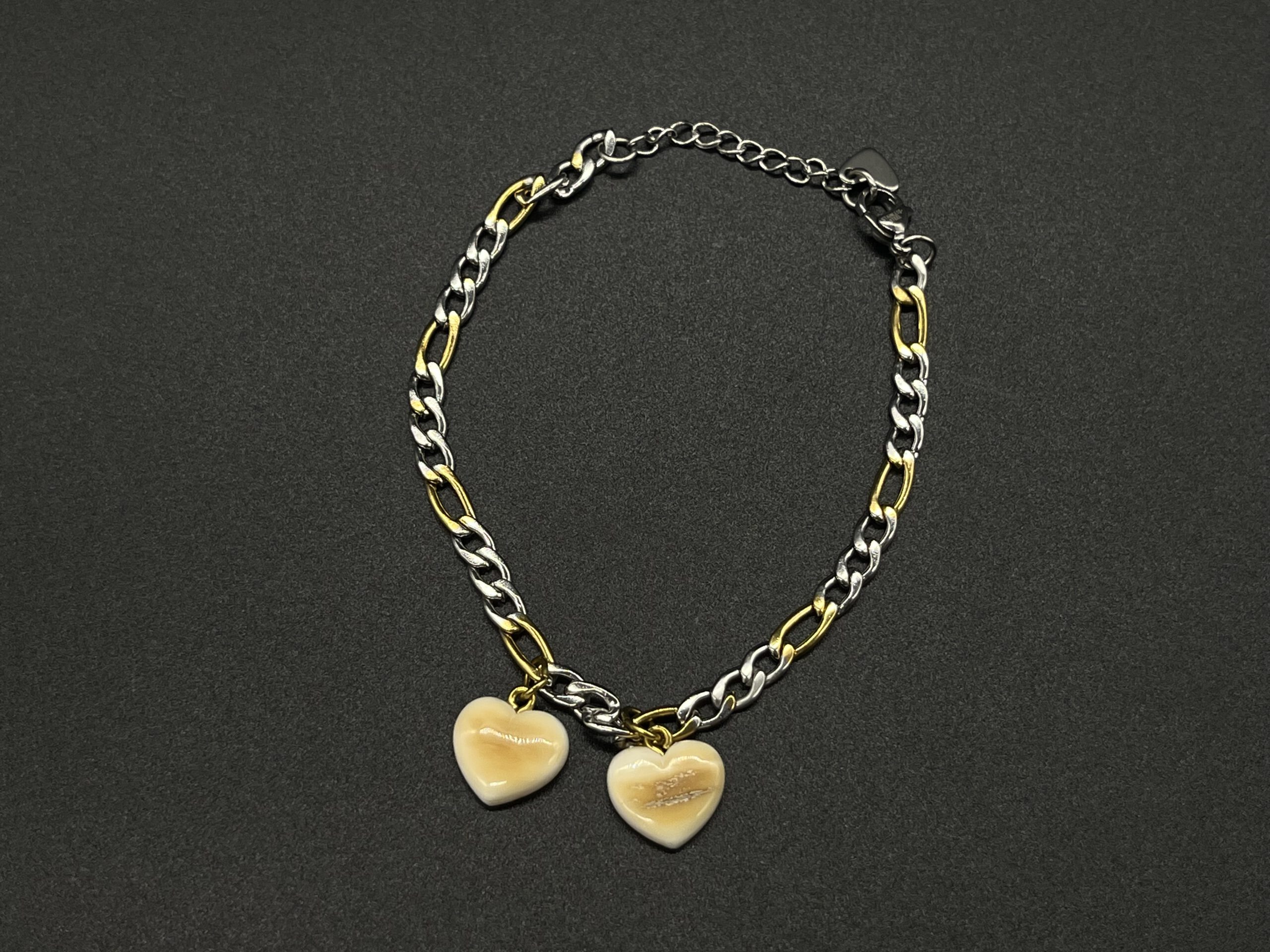 Herzmotiv aus Mammutelfenbein an vergoldeten & versilberten Armband.