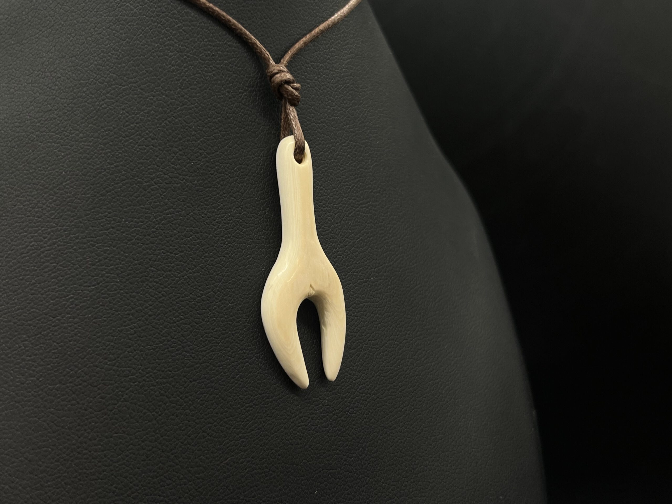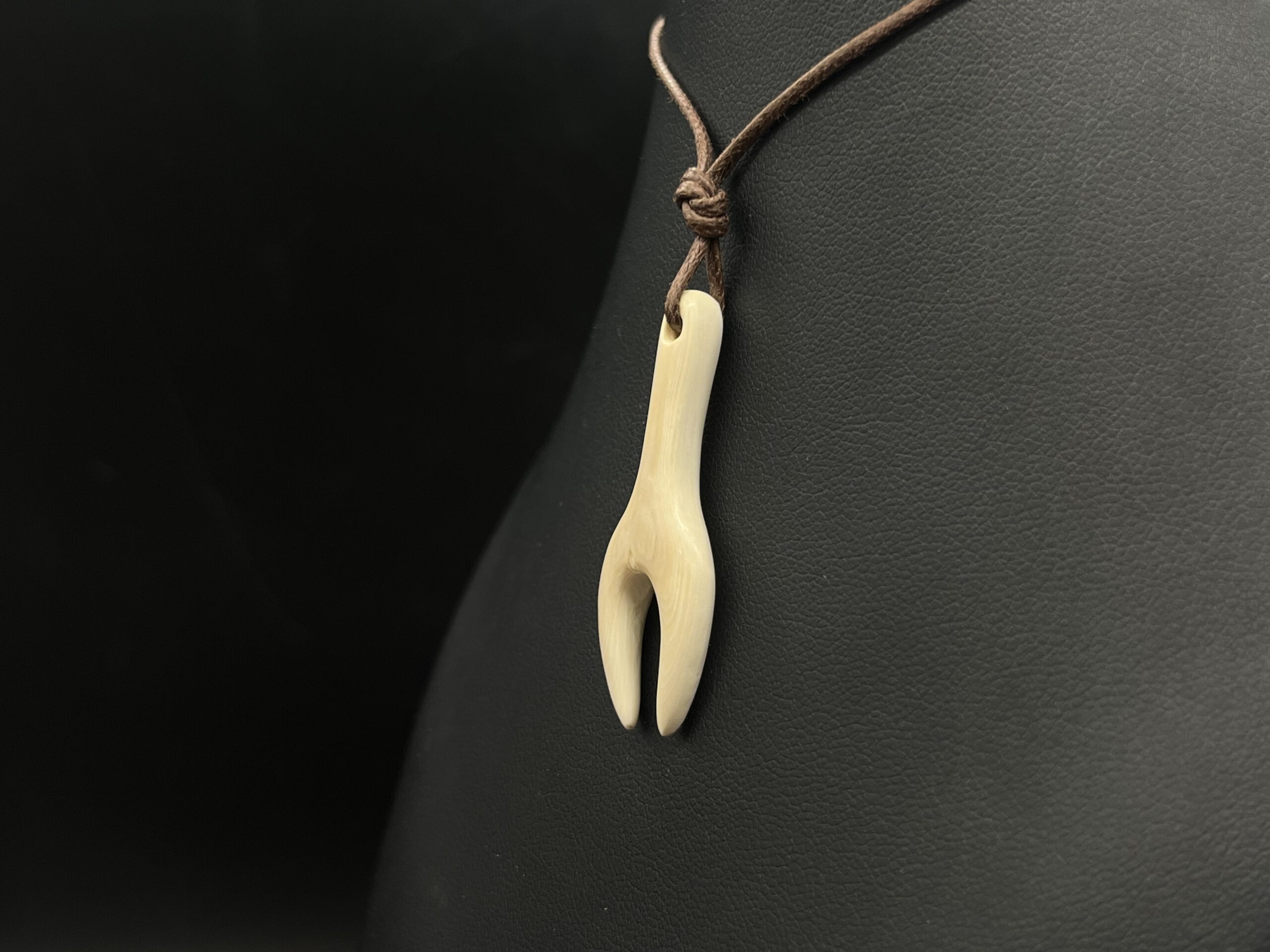 Abstrakte frauenfigur – nachbildung aus mammutelfenbein an textilband.