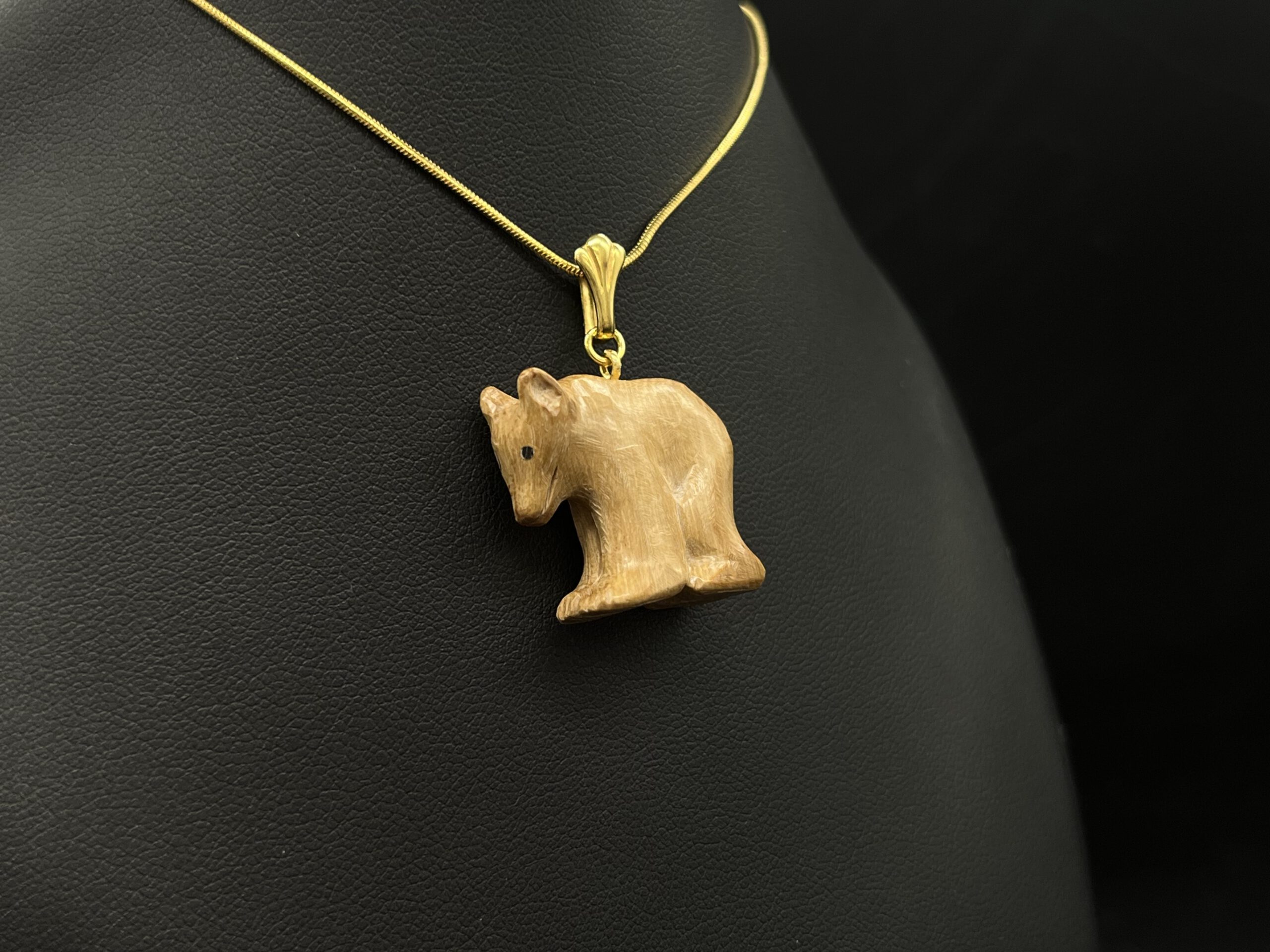 Bär aus Mammutelfenbein an vergoldeter Kette.