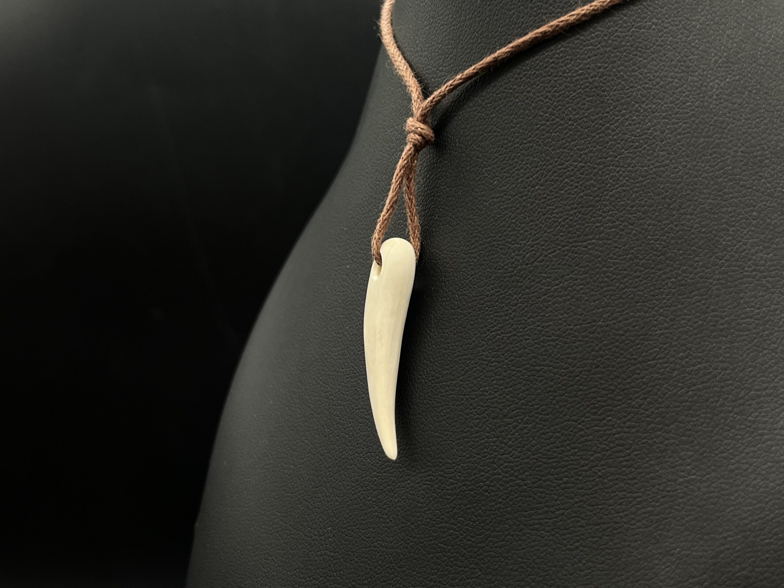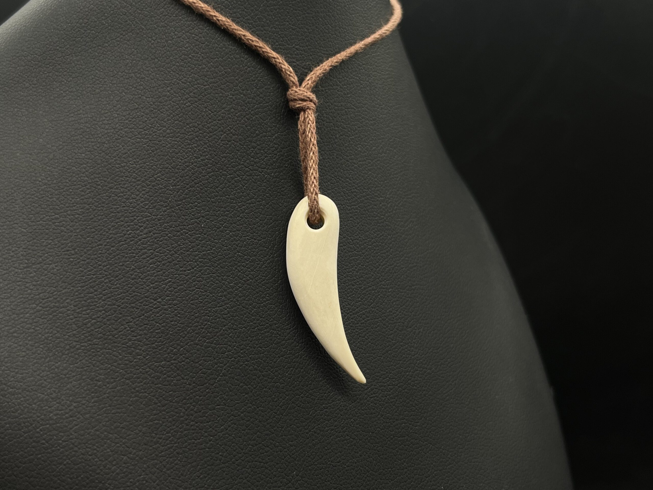 Zahnform aus Mammutelfenbein an Textilband.