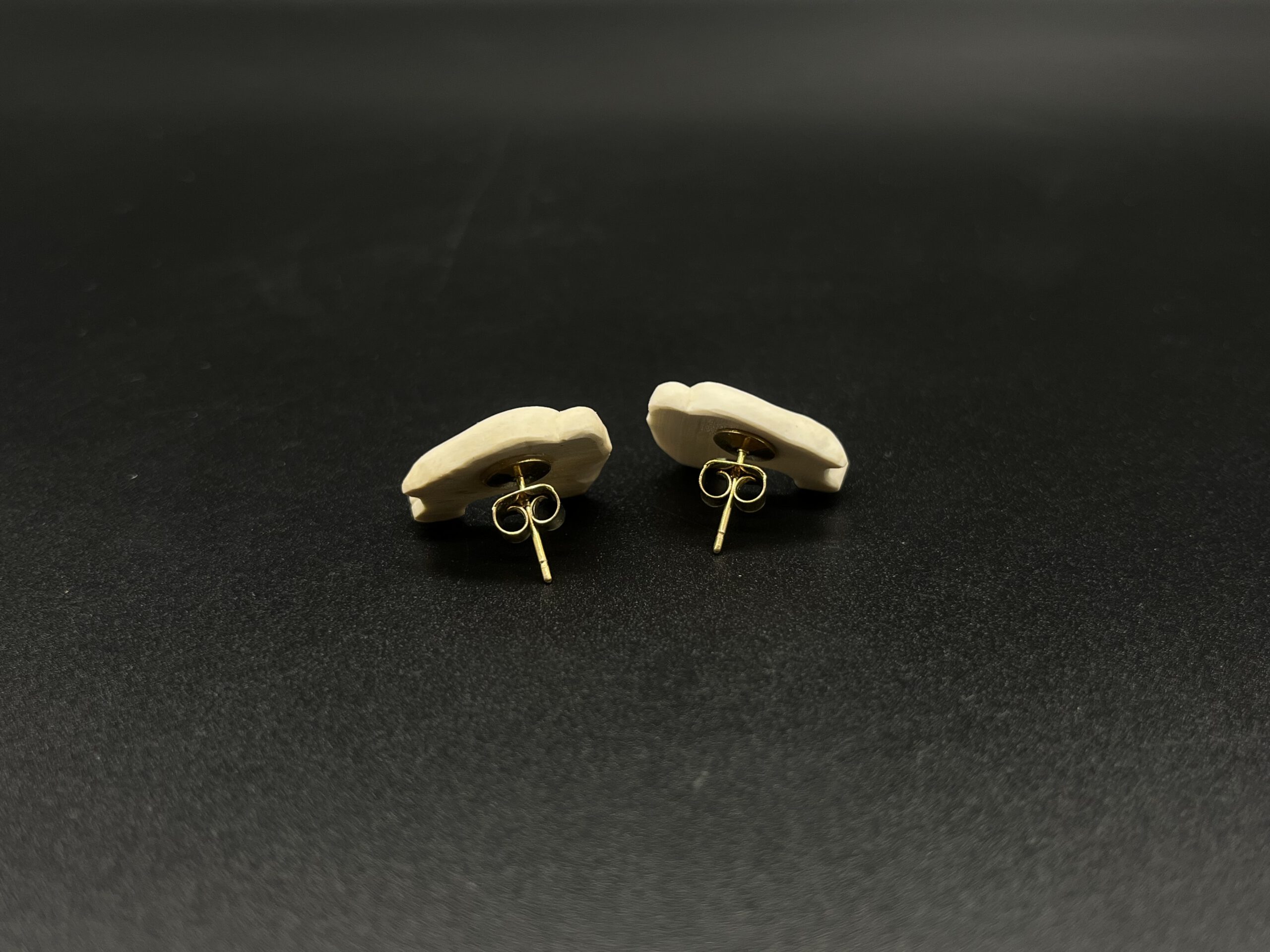 Ohrsteckerpaar Vogelherdmammut – Nachbildung aus Mammutelfenbein.